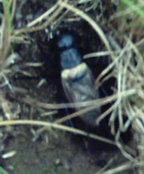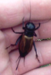 Der markanteste Unterschied des Weibchens zum Männchen ist die zwischen den Cerci gerade nach hinten stehende Legeröhre. Das Zirpen des Männchens soll unter anderem das Weibchen inspirieren, sich zu dem Erdloch hinzubewegen, und damit diese Kommunikation auch funktioniert, sitzen die Hörorgane bei den Grillen nicht am Kopf, sondern praktischerweise direkt an den Vorderbeinen. Im Gegensatz zu unserem Chor singen bei den Grillen nur die Männchen. Sie tun dies, indem sie ihre Flügel schräg hochstellen (wie ganz unten rechts in der grauen Abbildung zu sehen) und dann den rechten Flügel in schnellen Vibrationen über den linken reiben. Das Kratzen der ungleich geformten Flügelkanten verstärkt sich durch den kleinen Resonanzraum unter den Flügeln zu dem weithin hörbaren, sonoren Klang, der seit Urzeiten die Dichter und Komponisten inspiriert hat... Weitere heimische Grillenarten sind: